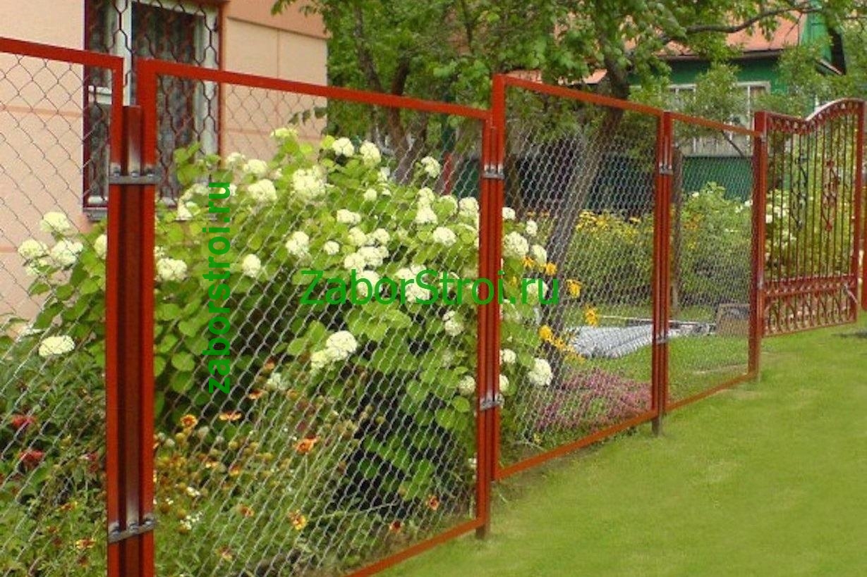 Заборы из сетки рабица в секциях из профиля 10 метров